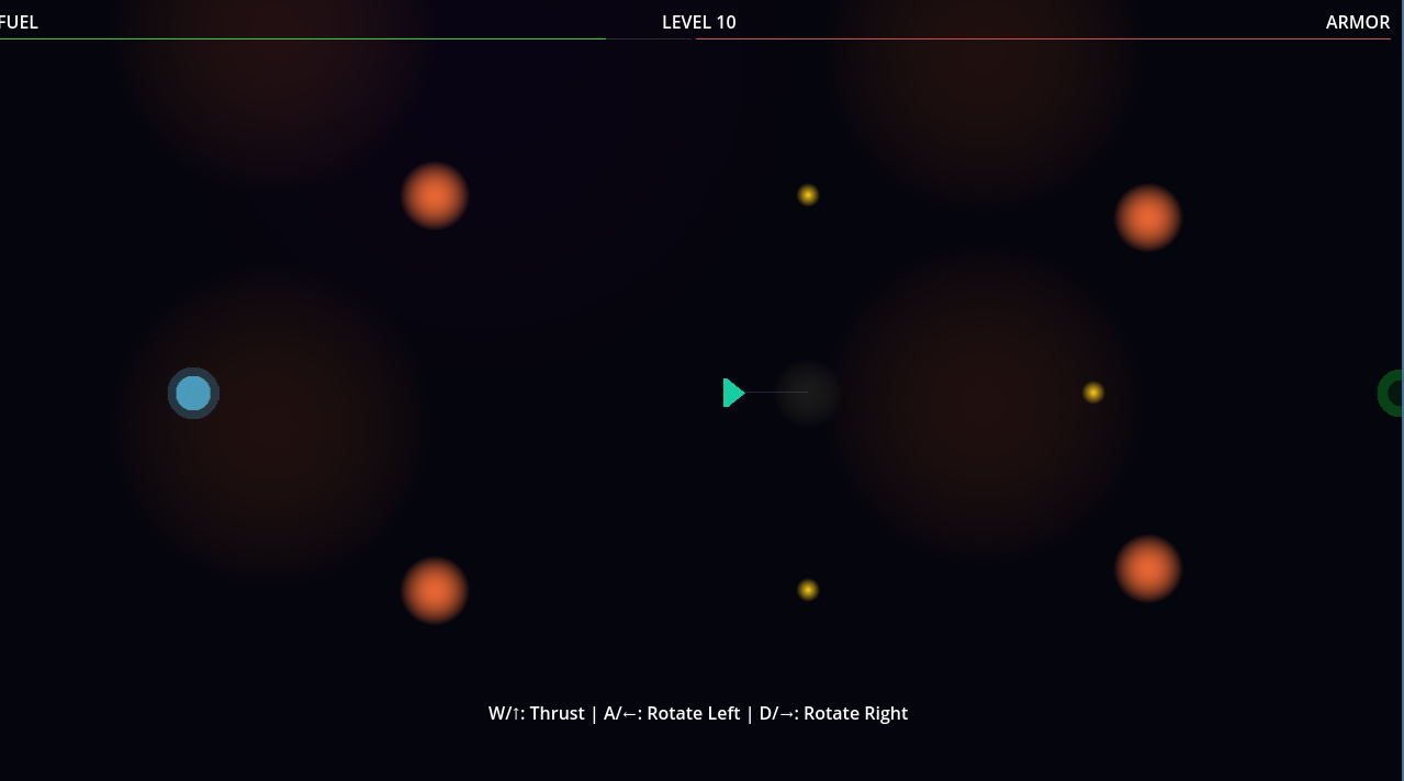 - Thrust to accelerate. Rotate to steer. Everything else is momentum and gravity.